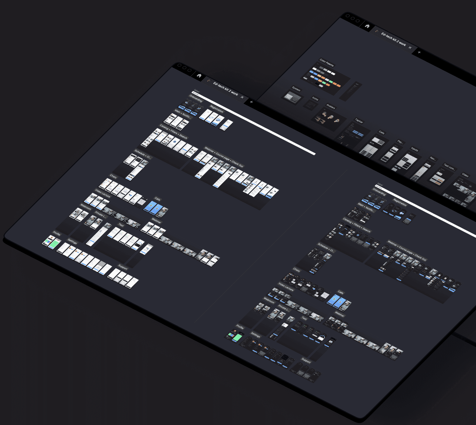 When the prototypes were ready, I focused on working out the UI as well as the design system. This allowed me to immediately determine the set of necessary elements and quickly refine the screens.