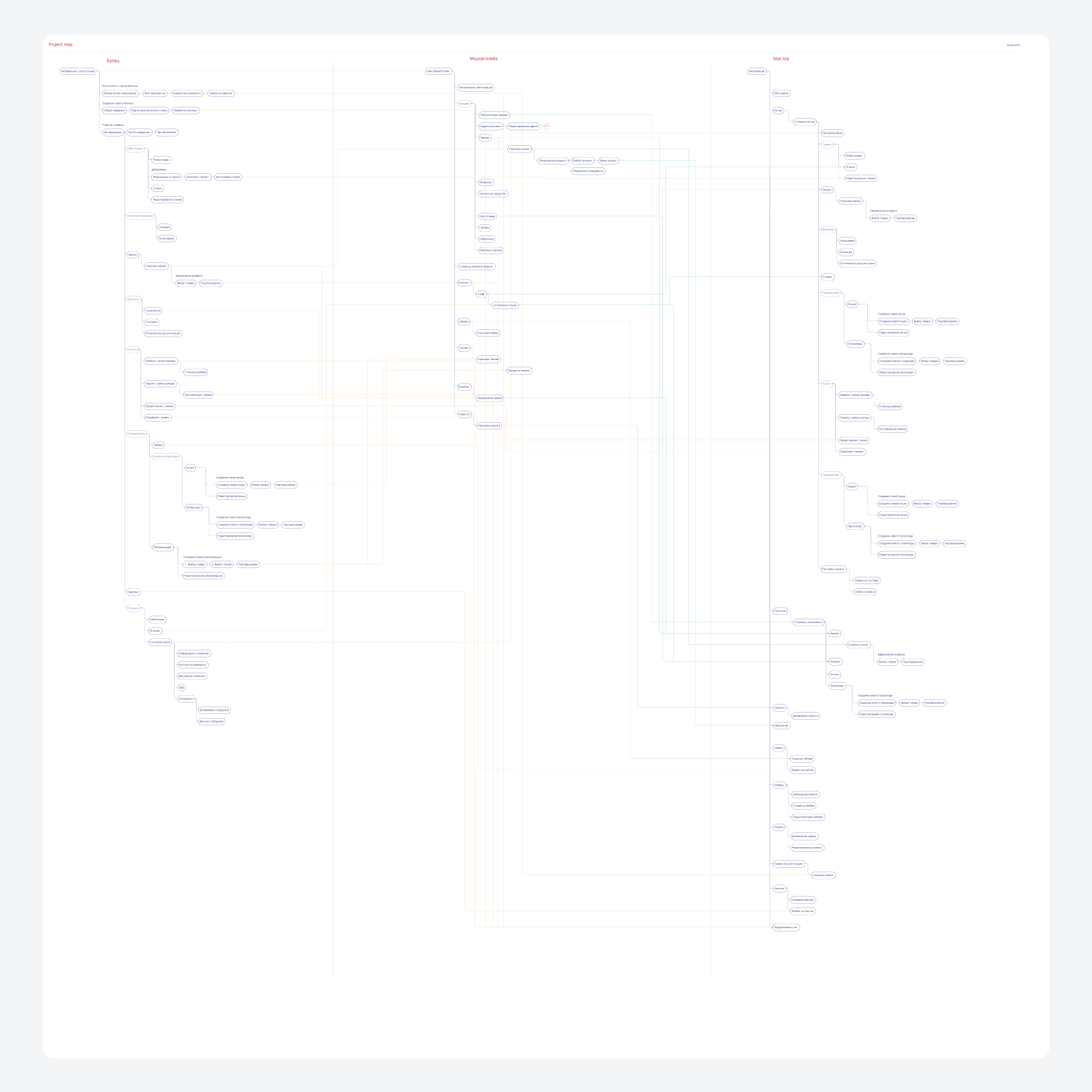 The research for the design of the marketplace was the easiest stage, since there were many marketplaces and product delivery services from whose experience it was possible to build. This allowed us to quickly create a CJM and design an information architecture based on it and start creating prototypes.