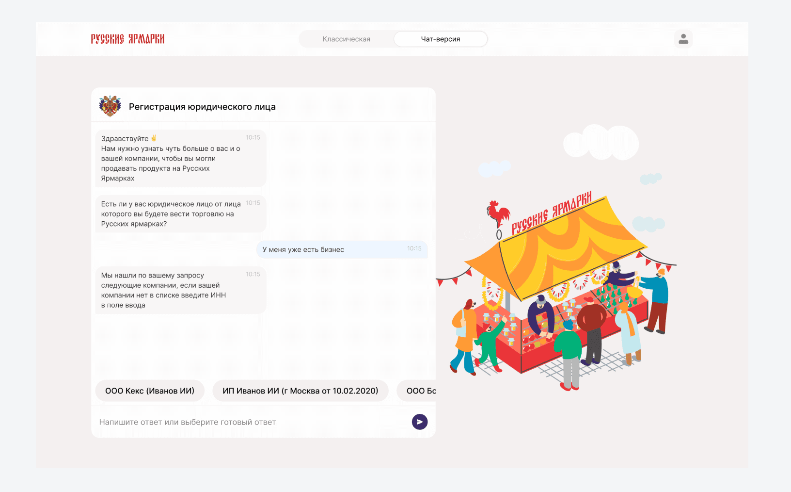 Russian Fairs is e-commerce startup. Оn the one hand, it provided infrastructure and space for local entrepreneurs to trade, and on the other hand, it gave customers the opportunity to order products from a local fair. Fairs were to be built under the project, taking into account the local flavor in different regions of Russia.